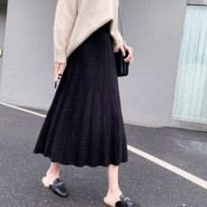 셀리나에스 플레어 니트 주름 롱스커트 A라인 플리츠