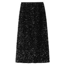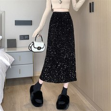 besteffie 벨벳 스커트 여성용 하이웨스트 스팽글 반짝이 벨벳치마 h라인롱스커트 E55