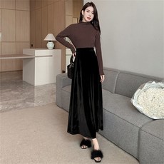 besteffie 벨벳 스커트 여성 빅사이즈 A라인 롱치마 벨벳셔링스커트 롱스커트 스커트 E55