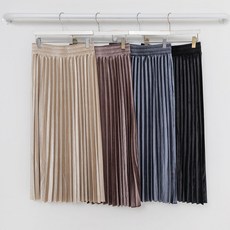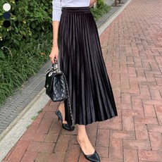 besteffie 벨벳 스커트 여성 베이직 벨벳주름치마 벨벳 롱치마 빅사이즈 봄가을 주름치마 E55