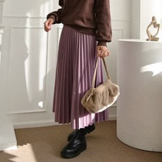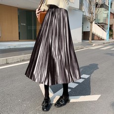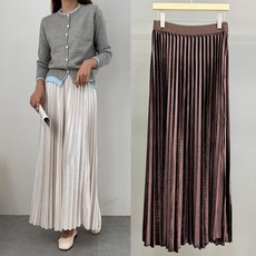 이힝 은은한 벨벳 플리츠 주름 롱스커트 스커트