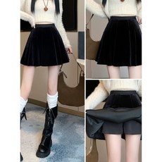 besteffie 벨벳 스커트 여성 캐주얼 플레어스커트 밴딩 겨울치마 A라인 여자치마 E55