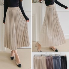 벨벳 롱 스커트 주름 플리츠 여성 밴딩 치마 데일리룩
