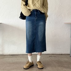 잇진 여성 융털기모 워싱 스판 데님 뒷트임 컷팅 롱스커트