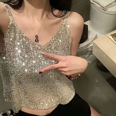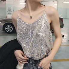 여성 블링 스팽글 끈 나시 W290