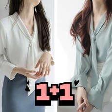 다즐링 가을 쉬폰 긴팔 블라우스 리본 타이 하객룩 상의 2종 세트