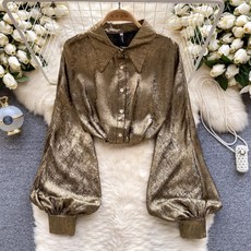 코카마니 여성 벌룬 소매 예쁜 펄감 반짝이 화사한 긴팔 블라우스