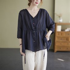 이러한 블라우스는 주로 폴리에스터, 실크, 레이온 등의 재질로 제작되며, 부드럽고 편안한 착용감을 제공합니다. 일반적으로는 셔츠 칼라, V넥, 라운드 넥 등 다양한 넥라인으로 제공되며, 긴 소매나 반팔 디자인도 있습니다.