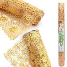 [신박한 잡화] 북유럽스타일 A형 방수코팅 레이스깔개 장식장레이스 - L타입 골드 작은꽃 무늬, 90