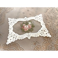 [신혼일기] 마름모 아기천사 프렌치 엔틱 레이스 매트 티코스터, 36cm*32cm, 화이트