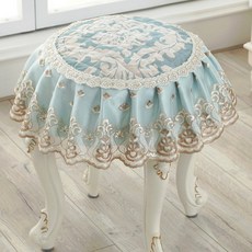엔틱 화장대 원형 의자 스툴 덮개 커버 패브릭 레이스 매트 패드 인테리어 장식, 30cm + 시니어 블루, 1개