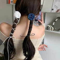 블링살롱 로지 투웨이 프릴 장미 초커 목걸이 헤어끈 겸용 3컬러 레이어드 화려한 파티룩 여자 쵸커 머리끈 발레코어 장미코사지 꽃초커