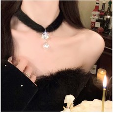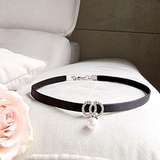 일호장신구 큐빅 더블 라운드 드롭 진주 블랙 초커 데일리 패션 포인트 여성 목걸이