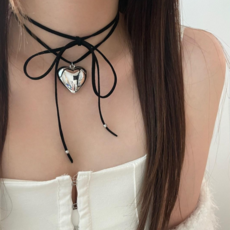 볼륨 빅 하트 스트랩 스트링 초커 목걸이 (2way 연출)