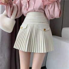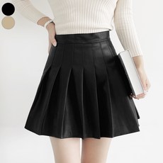 가비진 여성용 레더 A라인 플리츠 미니 스커트 속바지 안감 내장 가죽 치마 짧은 스커트