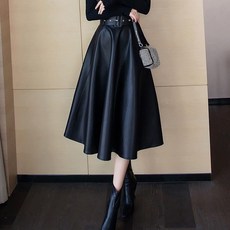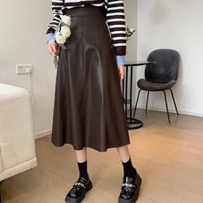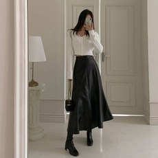 [당일출고] 에이스토리 고급 레더 플레어 가죽 롱스커트 연말 모임룩 가죽치마