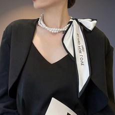 [MSMULTIVERSE] 하이 엔드 장식 진주 미니 스카프 여성 쁘티 실크 목걸이 리본 연출 코디 아이템