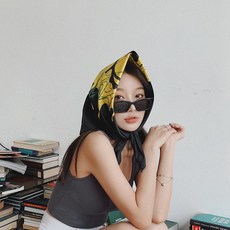 스카프 머플러 공항 패션 모자 헤어 장식 꾸미기 블랙 실크 멀티 숄 목도리 패턴 간절기