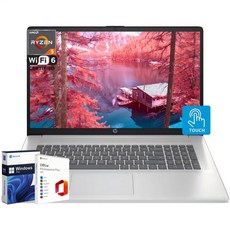 HP 최신 17 터치스크린 비즈니스 노트북 Microsoft Office 평생 라이선스 및 Windows 11 Pro 17.3인치 HD+ 디스플레이 AMD 6코어 Ryze, 16GB RAM | 1TB SSD