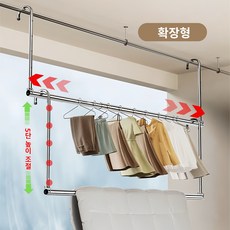 무타공 건조대 베란다 빨래건조대줄 압축봉 테라스 빨래 이불 천장빨래걸이 일체형 직선봉, 화이트