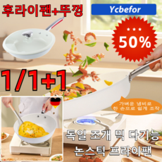 Ycbefor1/1+1 [4배 논스틱] 독일 조개 믹 다기능 논스틱 프라이팬 다용도 가정용 후라이팬 무코팅무점착팬 녹방지 프라이팬 인덕션 가스 통용되다, 아이보리*1, 1개