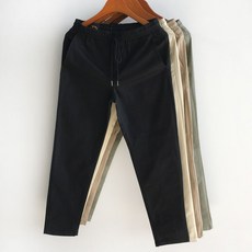 맨즈에버 면 스판 밴딩 바지 남자 9부 와이드 팬츠