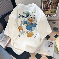 도널드덕 반팔티셔츠 남여공용 오버핏 면 라운드넥 프린팅 반팔 티셔츠