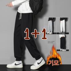1+1 남성 루즈핏 밴딩 기모 트레이닝 바지 겨울 따뜻한 조거팬츠 빅사이즈