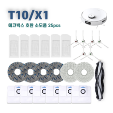 에코백스 T10 옴니 X1 옴니 터보 소모품 세트 물걸레 필터 먼지봉투 브러쉬 호환, 1세트, 엠보25pcs