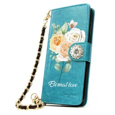 영원한사랑 플라워 장미 로즈 꽃 다이아 장신구 지갑형 카드및 지폐수납형 손목체인 휴대폰케이스 갤럭시 A71 A80 A90 A8스타 A9프로 온7프라임